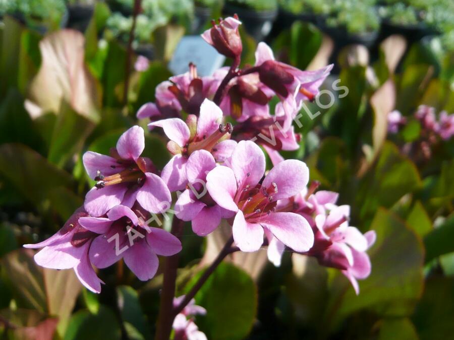 Bergenia cordifolia, česky bergénie srdčitá, je vytrvalá rostlina, která se rozšiřuje pomocí tlustého plazivého oddenku. Vytváří okrouhlé, kožovité, tmavě zelené listy, které vytrvávají na rostlinách i přes zimu, kdy získávají výrazný červený odstín. Kultivar David na jaře vykvétá drobnými červenorůžovými květy, které jsou uspořádány v husté latě. K řezu se hodí nejen květy, ale i listy.