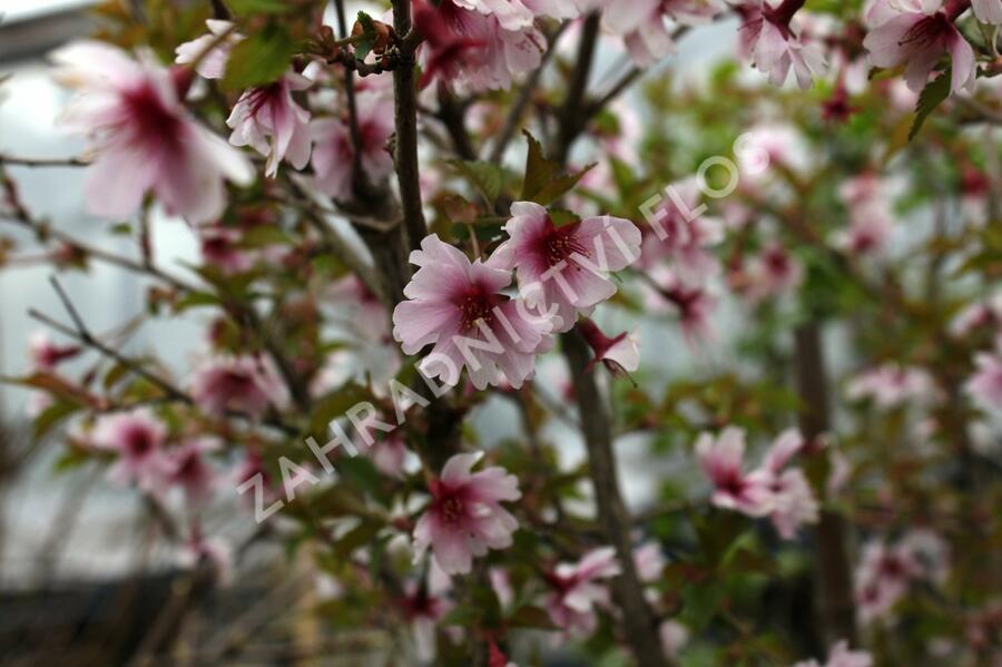 Tento opadavý nízký strom pochází z čeledi Rosaceae – růžovité a rodu Prunus. Dorůstá do výšky 5-8m a vytváří strom nebo keř s rozložitou korunou. Oválné listy s pilovitým okrajem raší bronzově, později mění barvu na… Vše o produktu